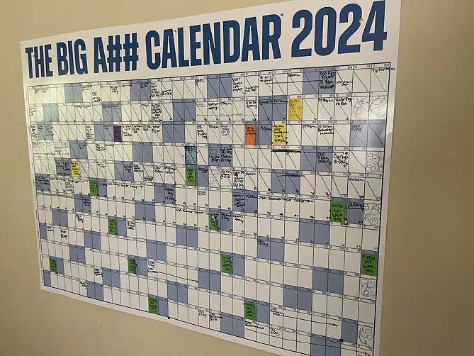 The calendar is 24" x 36" (2 feet x 3 feet) - large enough to see your entire year clearly, but compact enough for any wall space. Fits perfectly above a desk, in your kitchen command center, or bedroom. Comes with easy-hang grommets - no frame needed. Takes up less space than a typical wall mirror but holds your entire life organized.